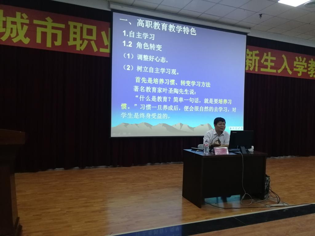 | 教务处处长林三睦副教授讲授高职教育特色和高职管理规范 |