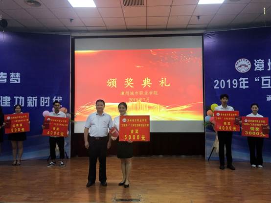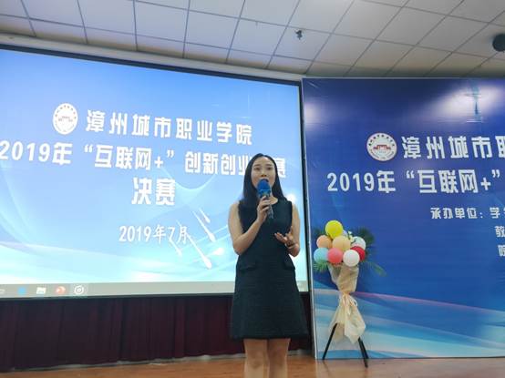 2019年7月3日下午,漳州城市职业学院2019年“互联网+”创新创业大赛决赛在梯教六隆重举行。学院院长刘惠河、副院长林良海、副院长郑文平等莅临现场指导,院赛组委会成员、参赛项目指导老师、学生代表等200多人到场观摩。漳州甲骨文创园运营总监许韵欣、福建创业家园科技有限公司联合创始人兼CEO夏瑶、闽南师范大学招生就业处方胜强老师、漳州市青年创业促进会秘书长杨舒担任评委。