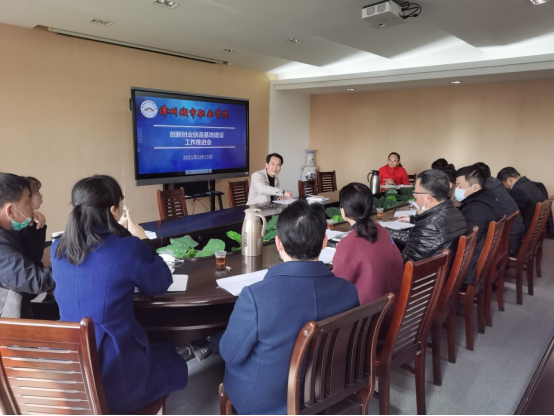 2021年1月15日上午,学院副院长郑文平在怀仁楼七楼会议室主持召开漳州城市职业学院创新创业创造基地建设工作推进会,学院产创融合示范基地建设领导小组及产创项目办公室全体成员参加会议。
