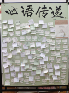 “心语传递”活动展板上粘贴着的是师生们想要传递给他人的正能量和美好祝愿