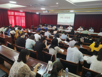 2021年8月30日下午,漳州城市职业学院学生工作处处长吴育清在怀仁楼四楼会议室主持召开学生工作会议,研究部署新学期学生工作。各系分管学生工作的领导、全体辅导员、学生工作处和团委会老师参加了会议。